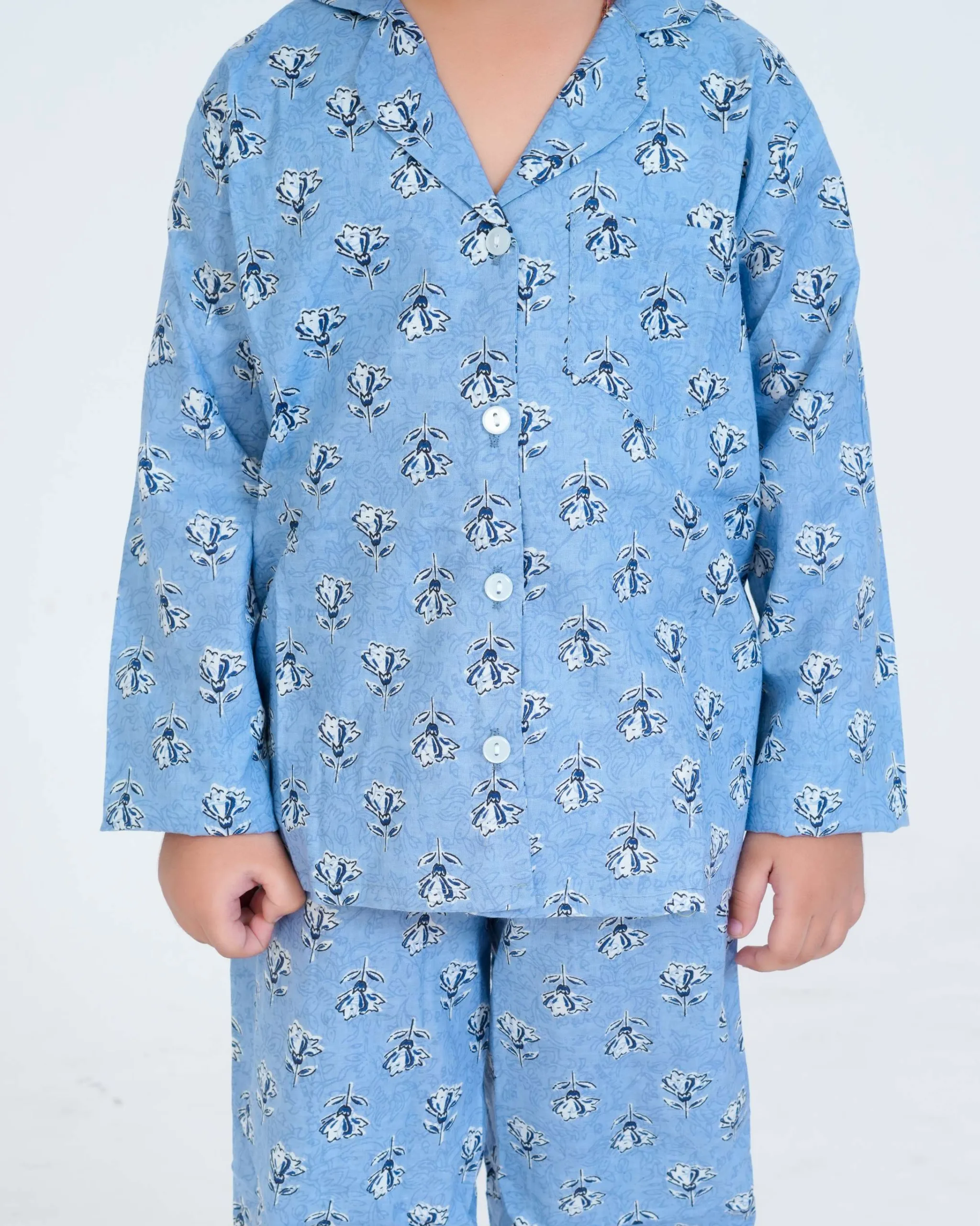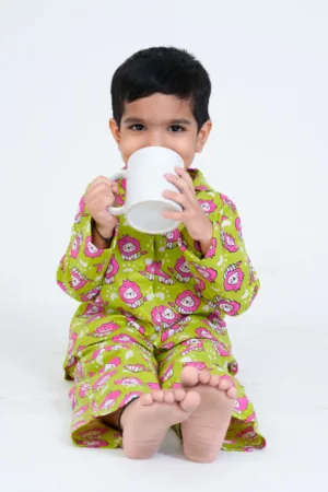 Make bedtime fun and cozy with our flower sanagneri Printed Kids Night Suit, crafted from soft, breathable 100% cotton to ensure your child’s comfort all night long. Featuring cute small buti prints, this night suit is designed to make your little one excited for sleep time!