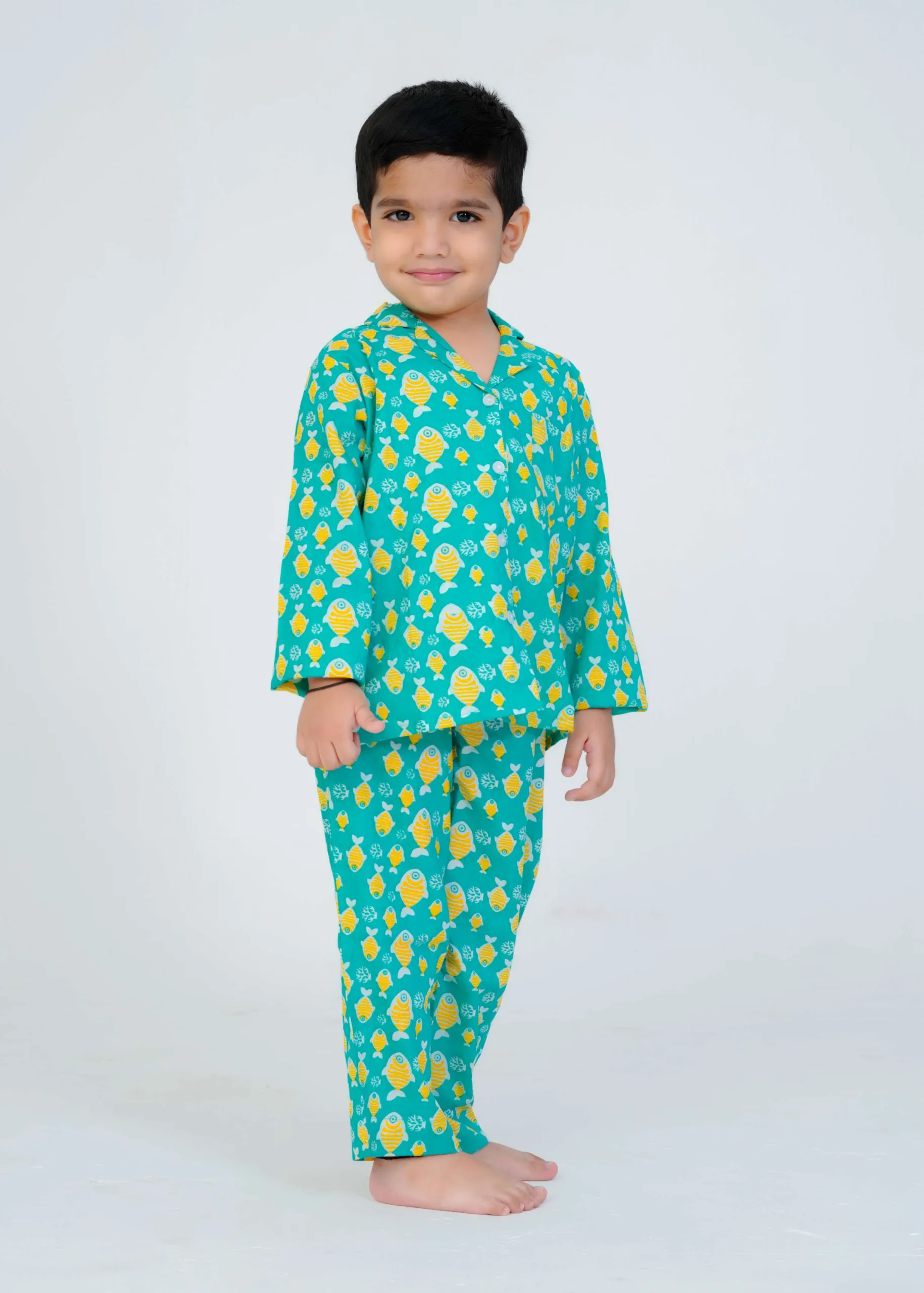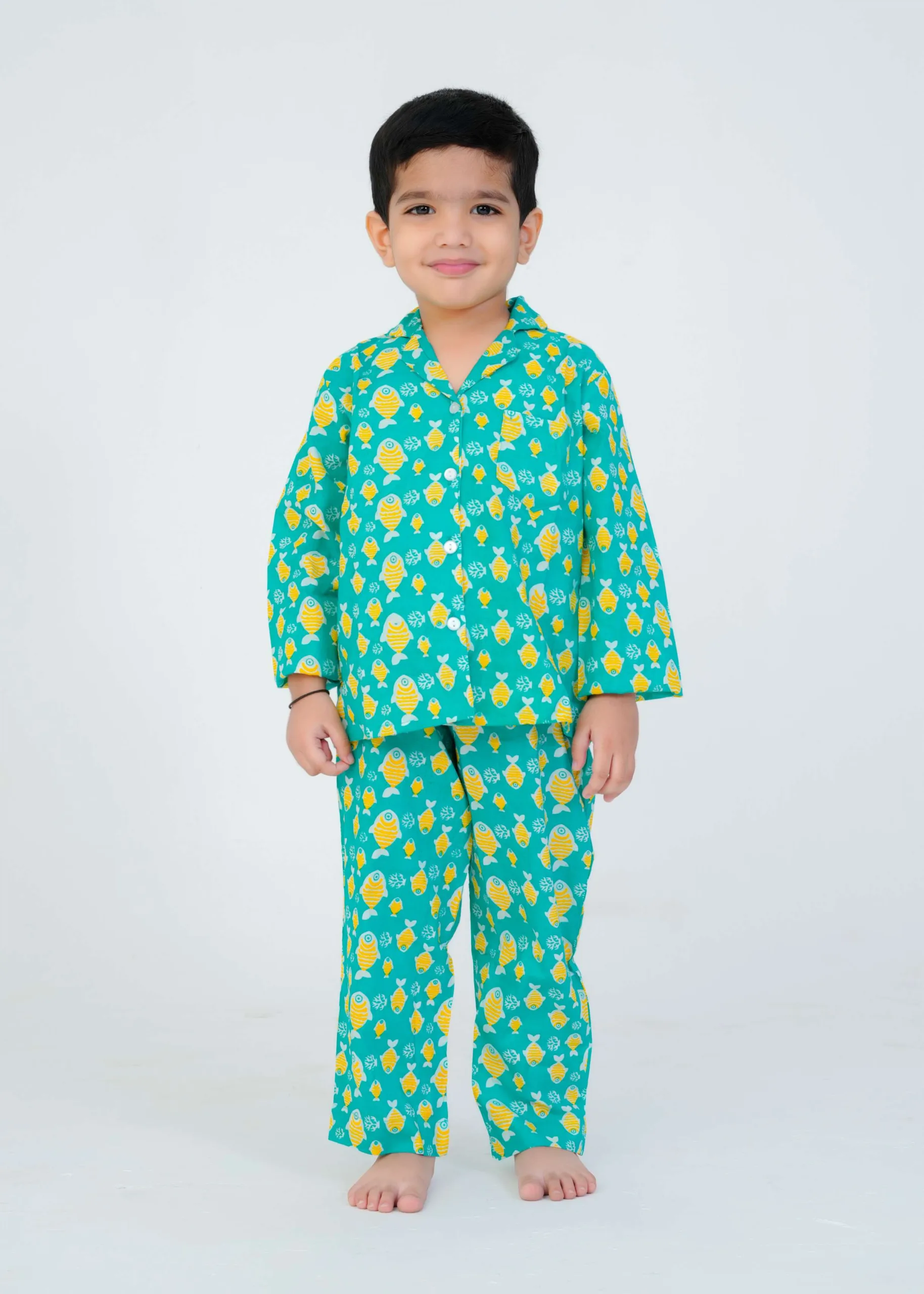 Make bedtime fun and cozy with our Sea Blue fish Printed Kids Night Suit, crafted from soft, breathable 100% cotton to ensure your child’s comfort all night long. Featuring cute and playful fish print, this night suit is designed to make your little one excited for sleep time!