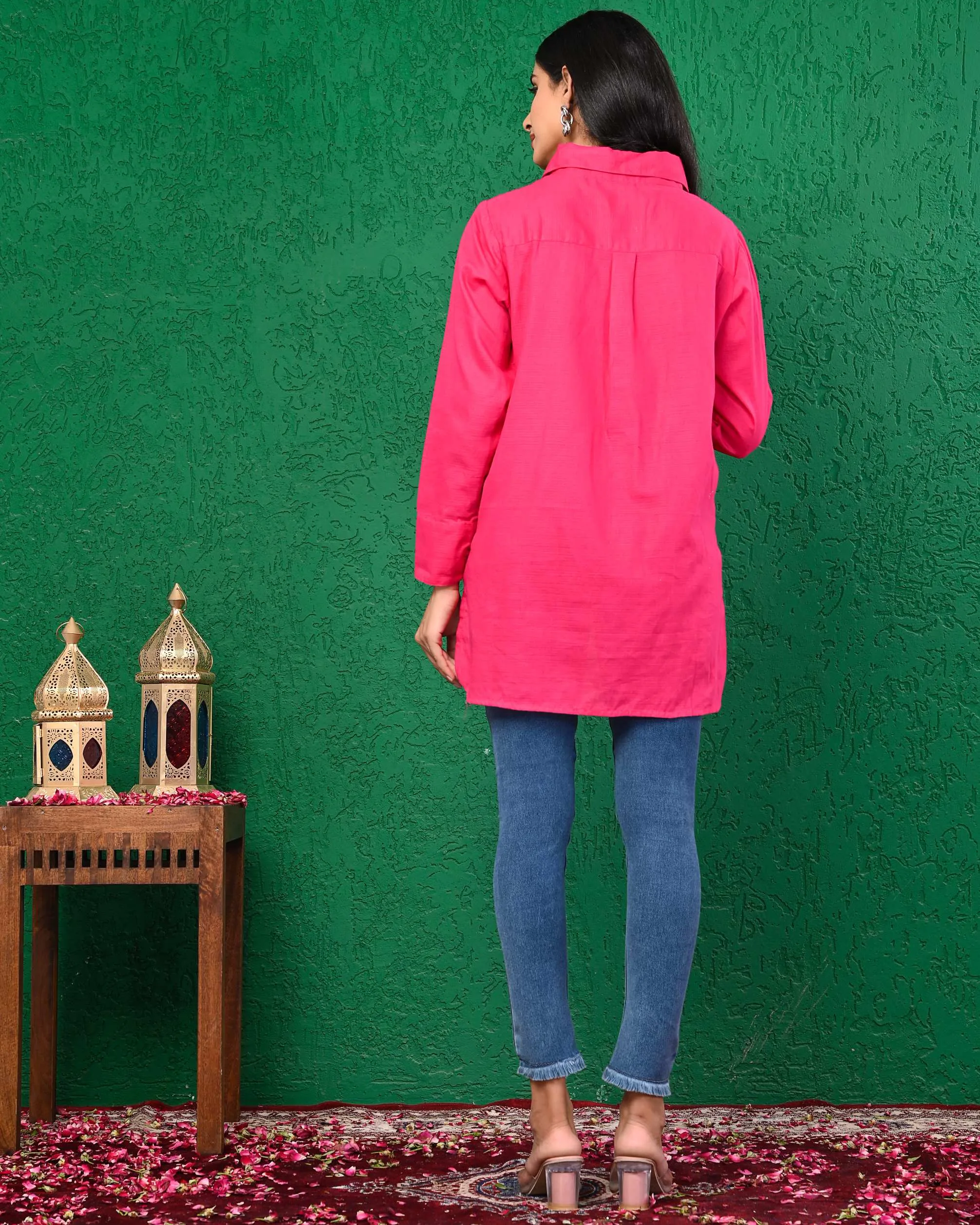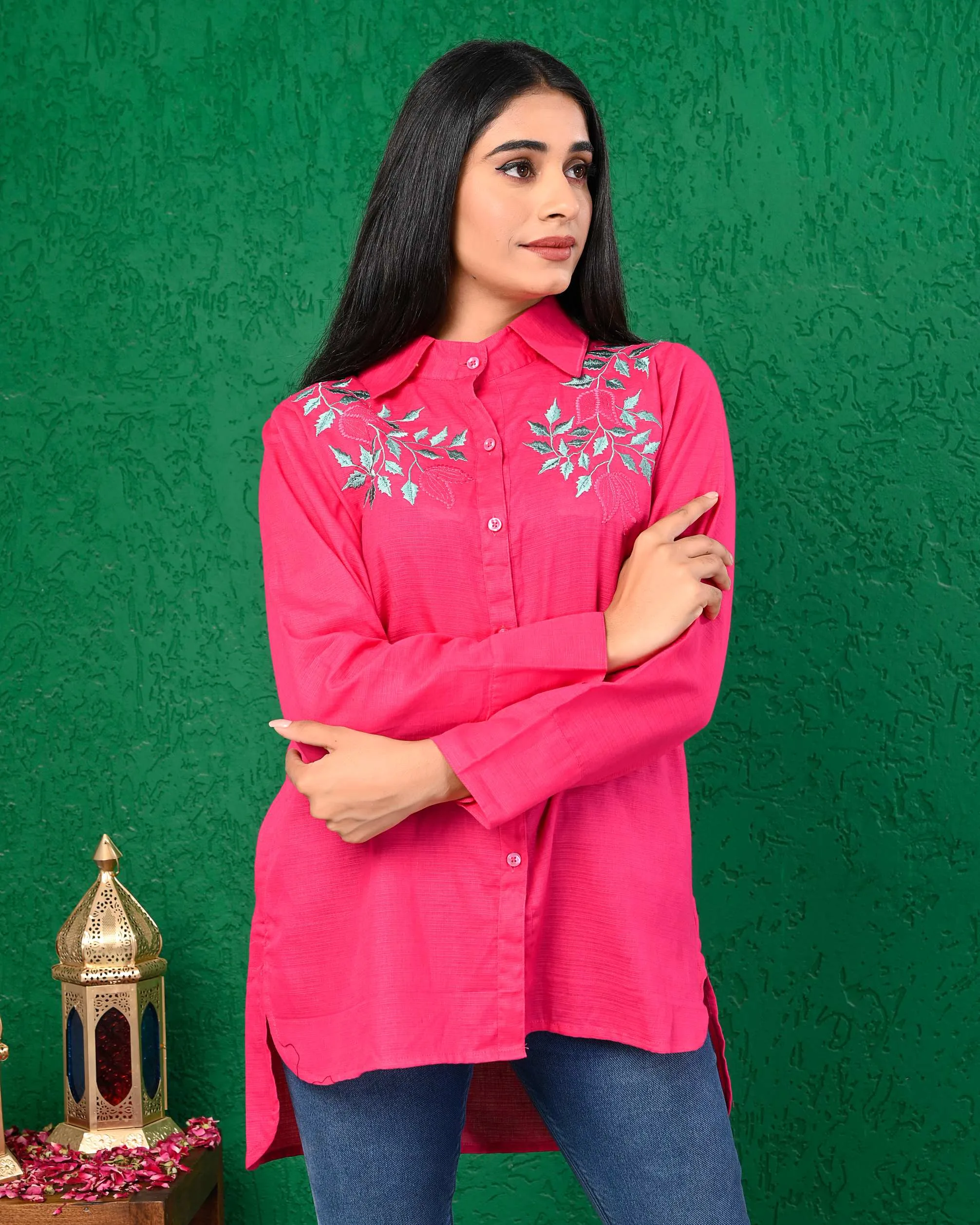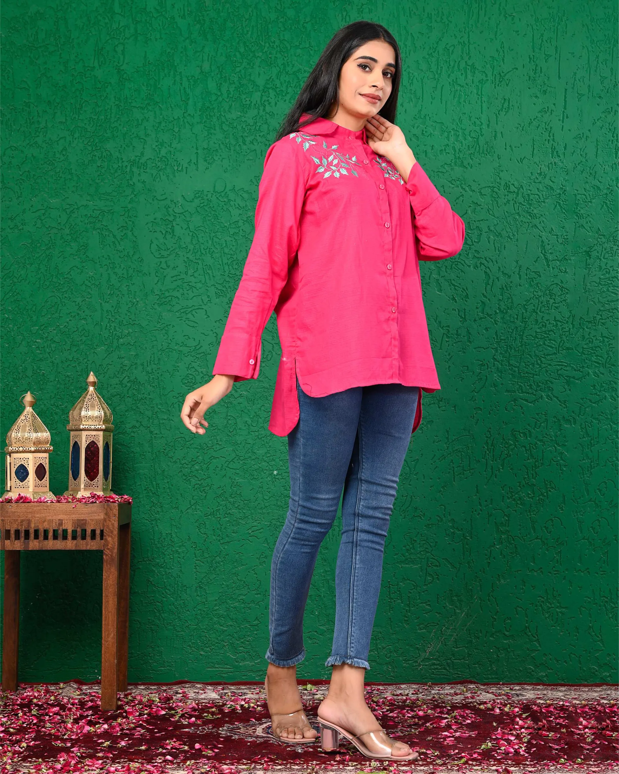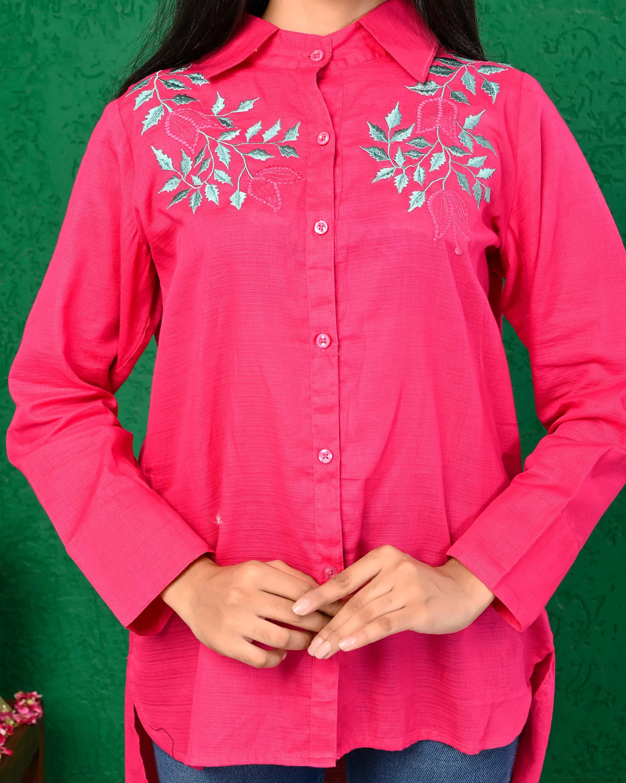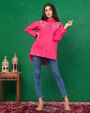 “Very elegant and stylish range from Kritvi tops, made up of rayon fabric, makes it comfortable and wearable for office purpose or any casual outing, it has apple bottom cut and shirt button up pattern with shirt collard neck. Pair it up with your favorite denim or white pant for stunning look. It has a nice tarquish thread embroidery.