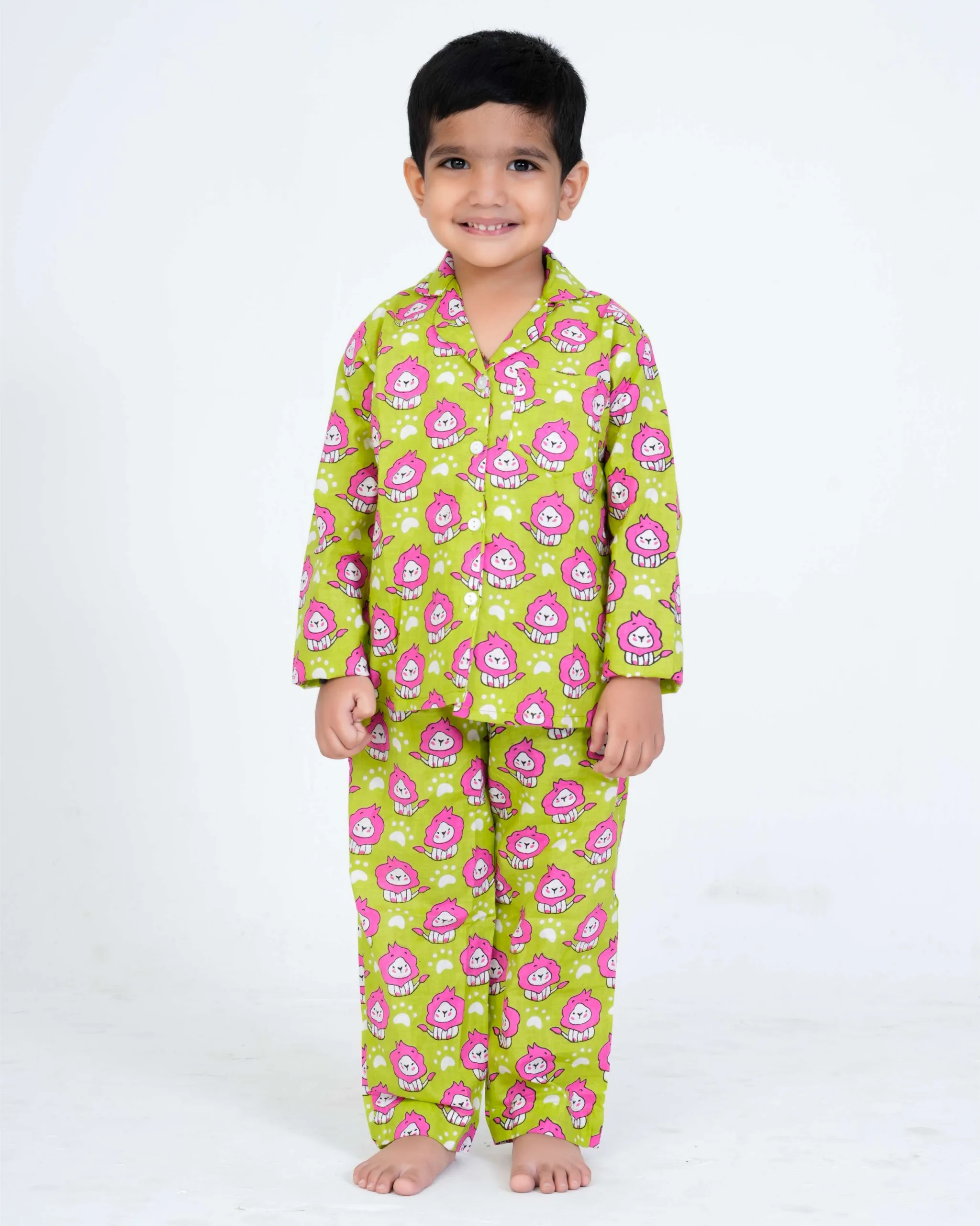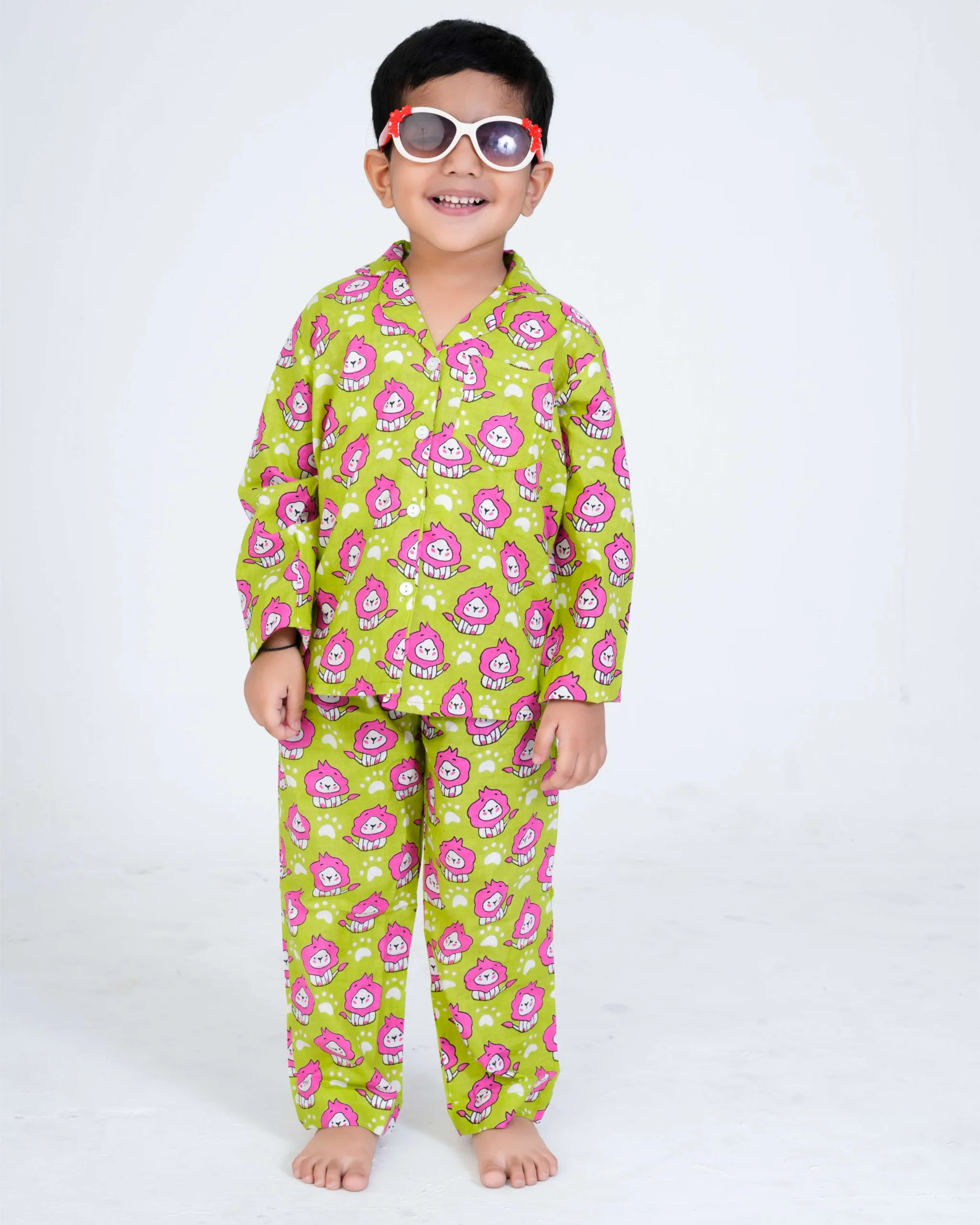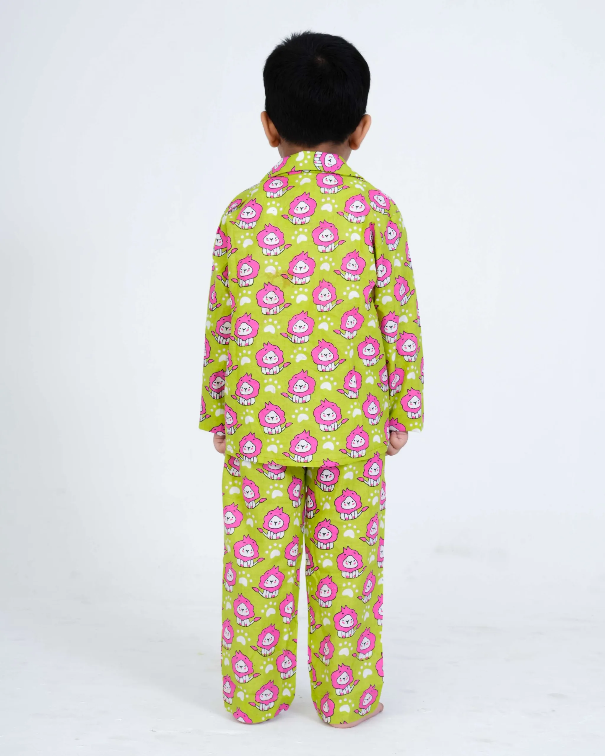 Make bedtime fun and cozy with our lion Printed Kids Night Suit, crafted from soft, breathable 100% cotton to ensure your child’s comfort all night long. Featuring cute and playful lion prints, this night suit is designed to make your little one excited for sleep time!