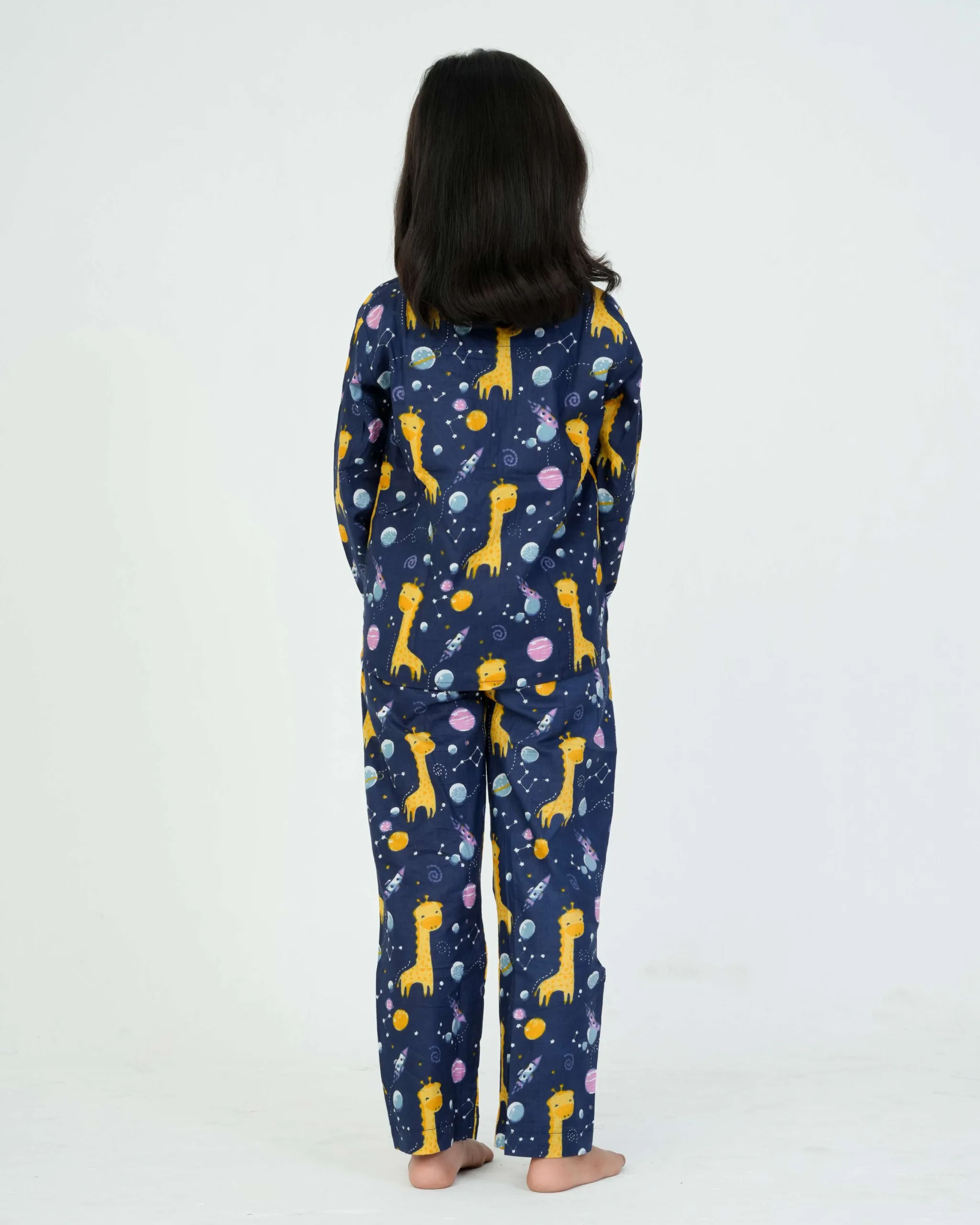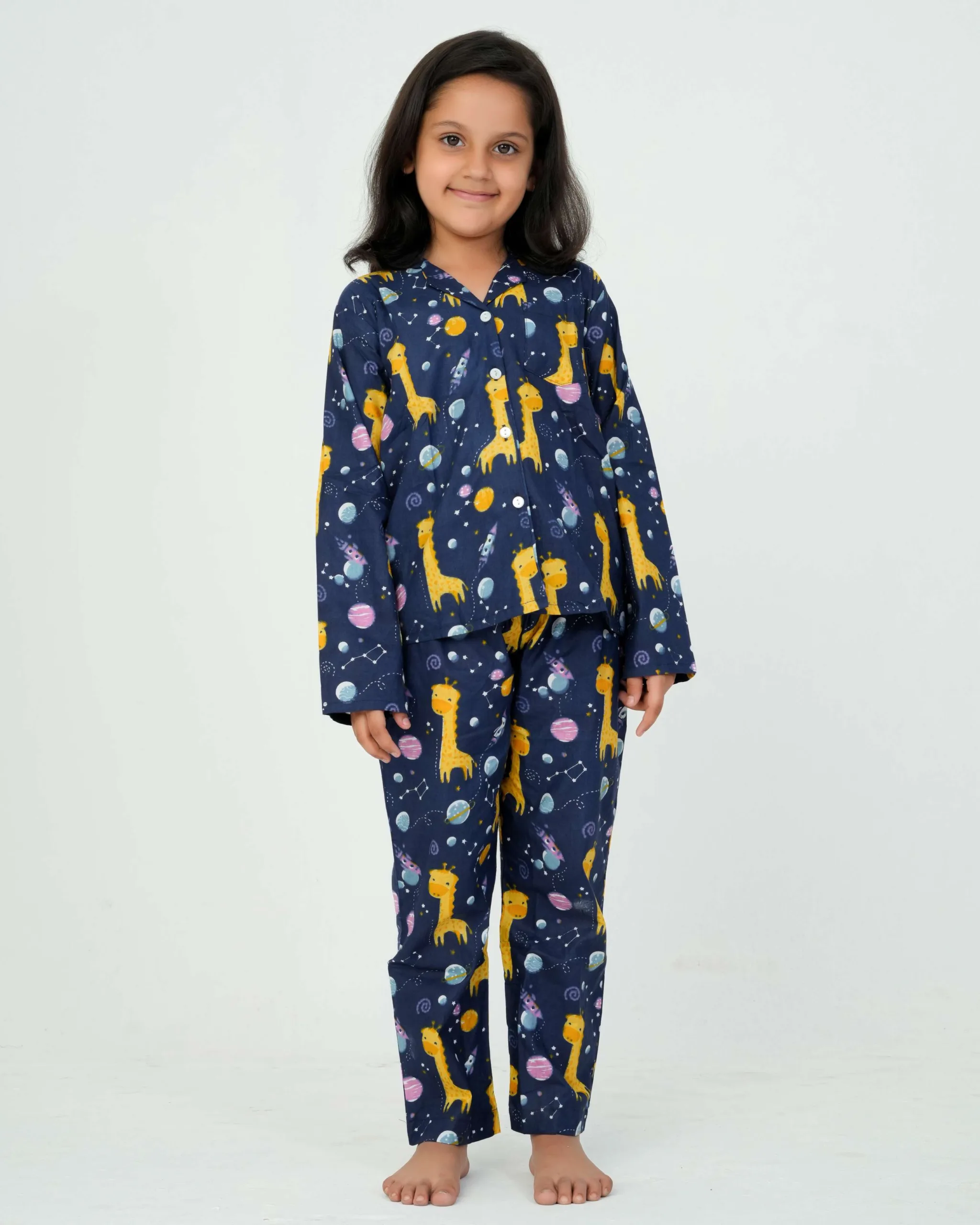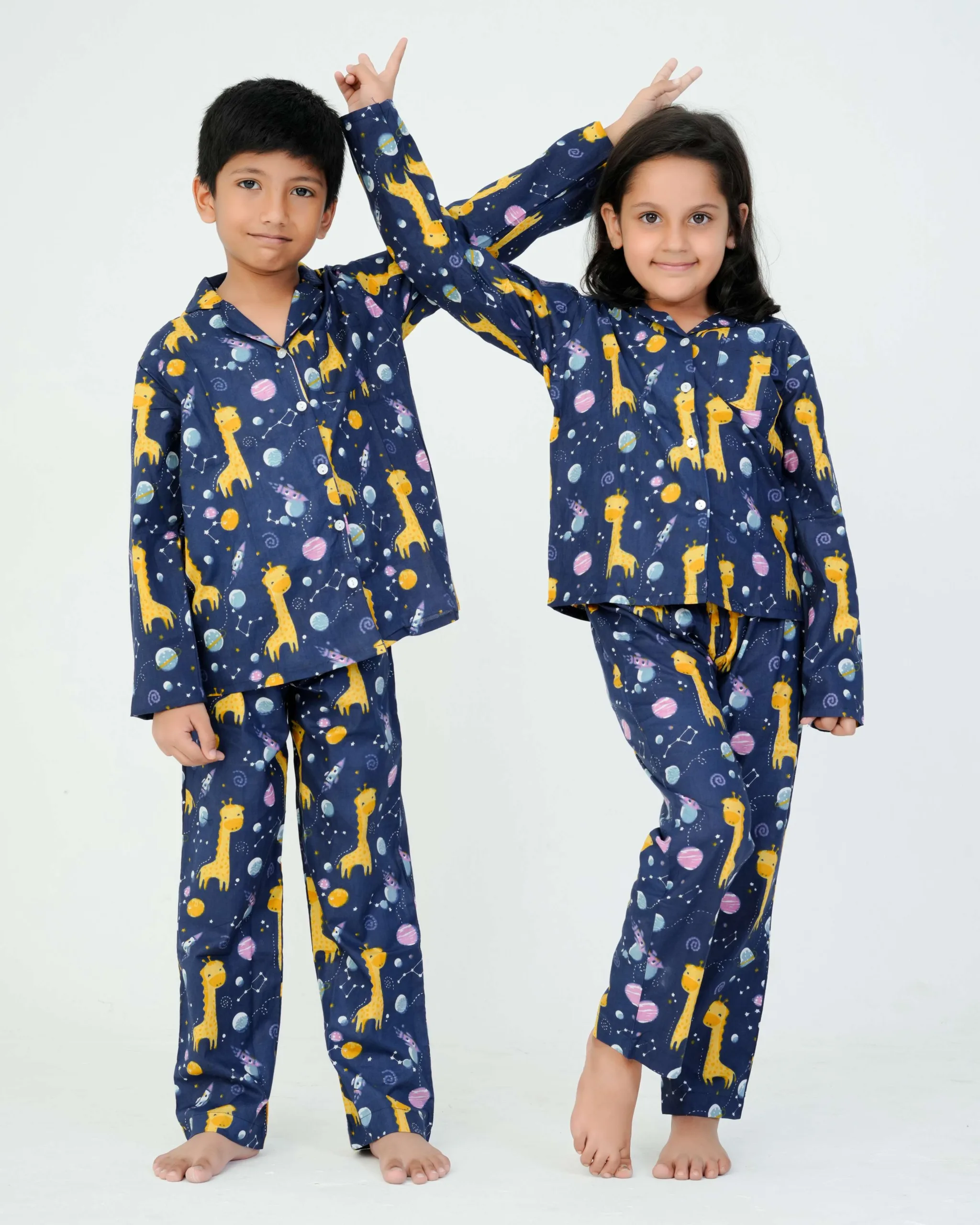 Make bedtime fun and cozy with our Zirraf Blue Printed Kids Night Suit, crafted from soft, breathable 100% cotton to ensure your child’s comfort all night long. Featuring cute and playful animal prints, this night suit is designed to make your little one excited for sleep time!